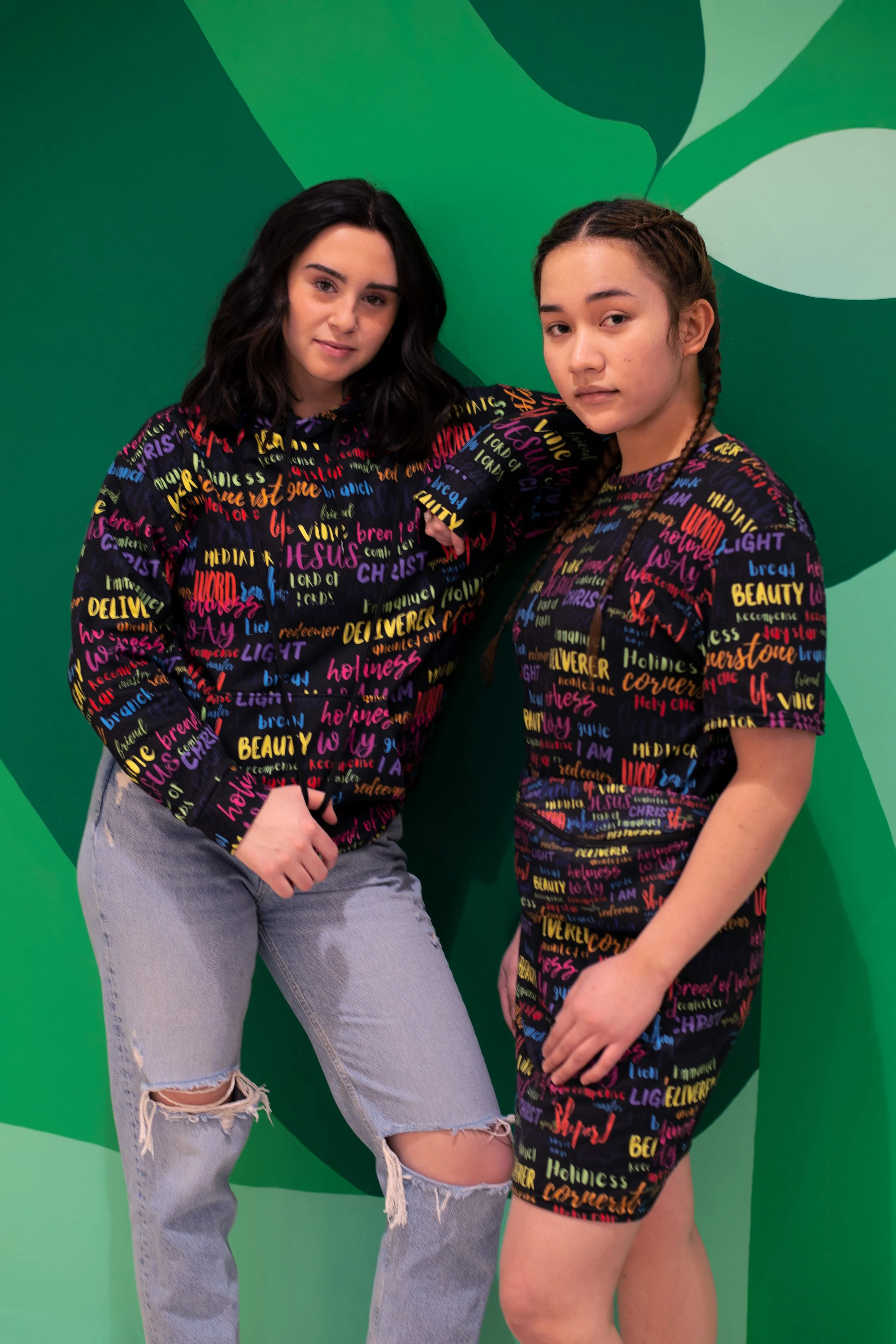 “I volunteered and worked on every fashion, modelling and art project around me. In the spring of 2019 the Lord healed me. His faithfulness and my healing provided the inspiration for the graphics and the creation of my brand.”