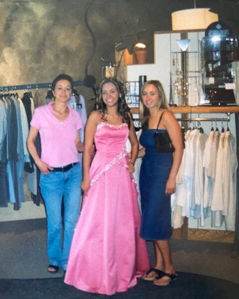 (From left to right) Dianne, Blake, Britt. Blake in her grad dress purchased from Vespucci in 2003 and Britt carrying a classic Fendi Baguette Bag.